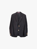 Blazer clássico abotoado com três bolsos na frente, pin na lapela e botões metálicos no punho.Cuidado de lavado