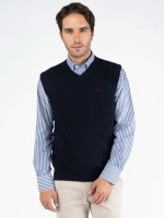 Pullover em lã merino com decote em V e acabamentos canelados.Envíos