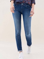 Calça de ganga skinny fit com lavagem clara. Botão, fecho de correr e cinco bolsos.Cuidado de lavado