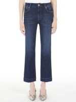 Calças de ganga flared com cinco bolsos. Cintura baixa e a linha larga no tornozelo. Completa com um vinco nas calças na frente e atrás.Especificación técnica