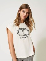 T-shirt em algodão com logo da marca bordado à frente. Tem decote redondo e manga curta.Devoluciones