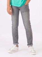 Calças de ganga menino slim fit. Têm botão, fecho de correr oculto por carcela e bolsos.Cuidado de lavado