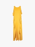 Vestido comprido de decote redondo. Tem folhos e abertura nas costas com laço.Cuidado de lavado