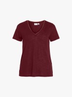 T-shirt de malha regular fit com manga curta, decote em V e acabamentos canelados.Envíos