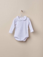 Body bebé em algodão, com colarinho bordado e manga comprida. Tem botões de pressão nas pernas e costas.Envíos