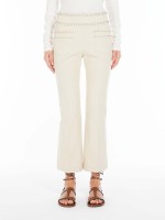 Calças de algodão com bolsos frontais e bolsos traseiros. Modelo de perna larga. Pequenas tachas metálicas. Fecho de correr oculto na lateral.Envíos