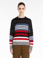 Camisola oversize em lã às riscas. Tem decote redondo, manga comprida e acabamentos canelados.Envíos