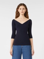 Malha canelada. Slim fit. Decote em V largo na frente e atrás. Mangas quimono 3/4.Envíos
