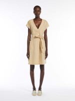 Vestido curto sem mangas em algodão, de silhueta larga e evasê com grande prega central reversa na frente e nas costas. Modelo com decote em V cruzado, bolsos frontais e fendas laterais na bainha. Cinto combinado.Envíos