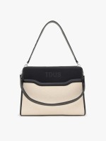 - Mala shopper média em algodão com detalhes em poliuretano e couro bovino