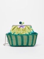 Clutch em algodão estampado e base em PVC bicolor contrastante. Alça dupla removível em couro e corrente. Fecho bobble. Bolso interior.Envíos