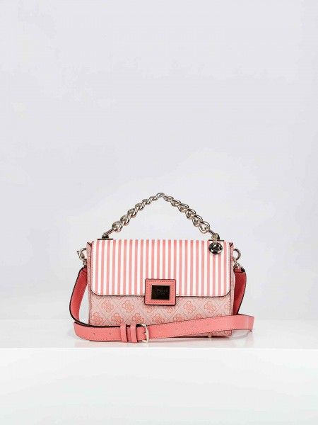 Pochete cilíndrica com lantejoulas, alça em corrente e fecho de encaixe adornado por aplicações. Ref. Marca: BCE874