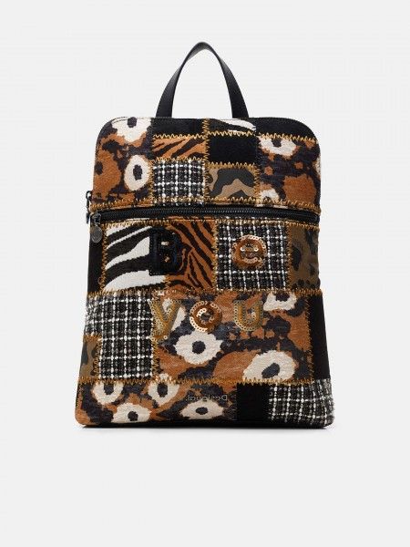Mochila de formato retangular com duas pegas de mão e alças nas costas. Emblema da marca na frente. Fecho de correr. Altura 38cm. Ref. Marca: 23510