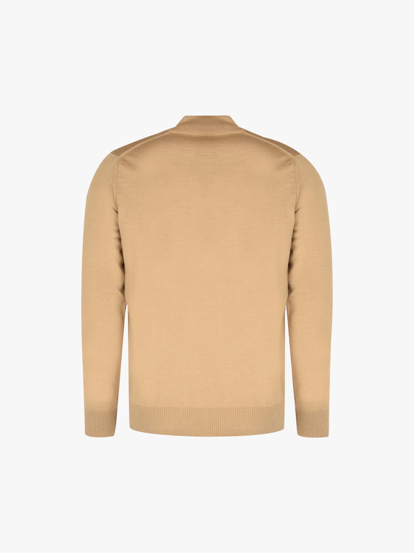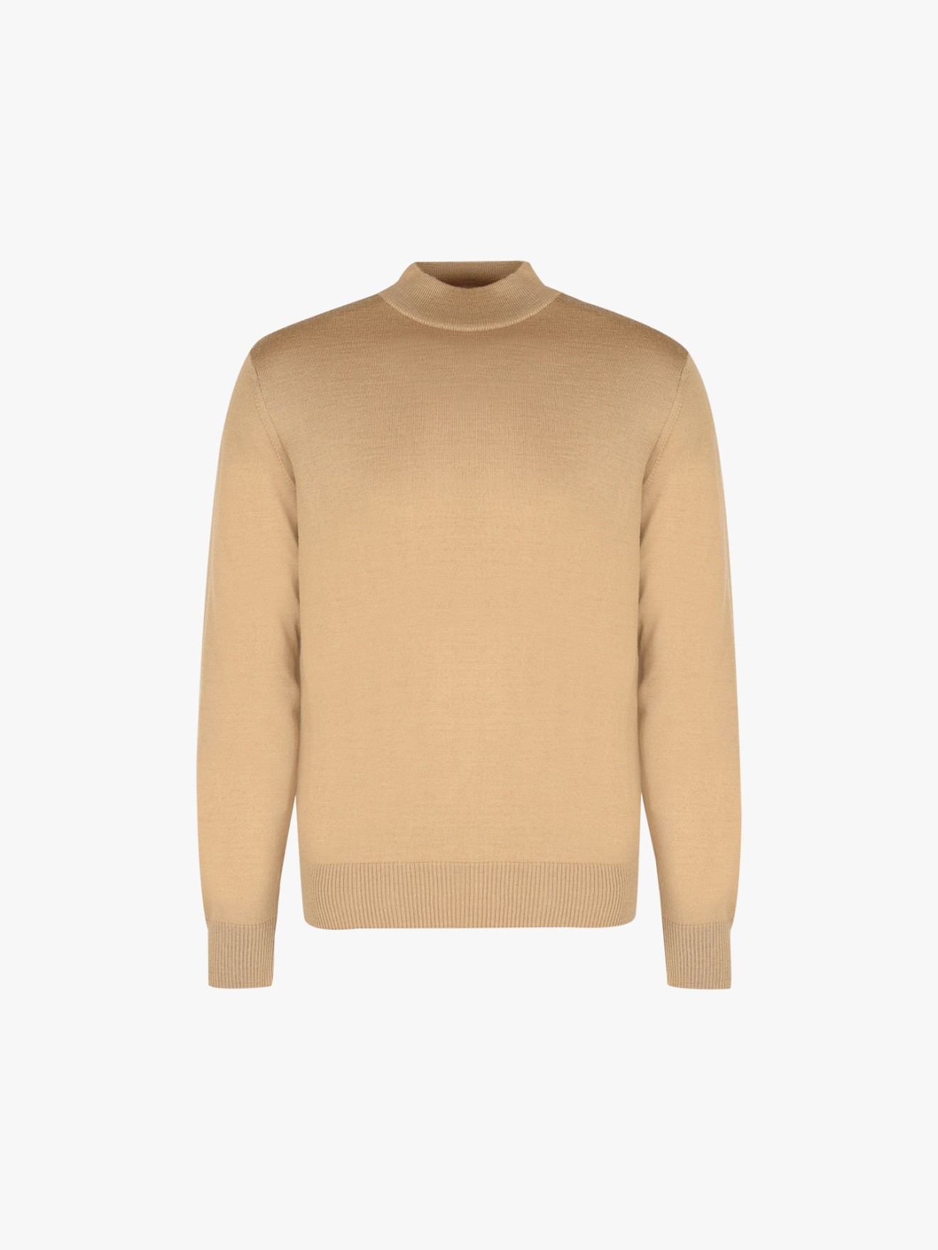 Camisola em lã merino com meia gola, manga comprida e acabamentos canelados.Composição
